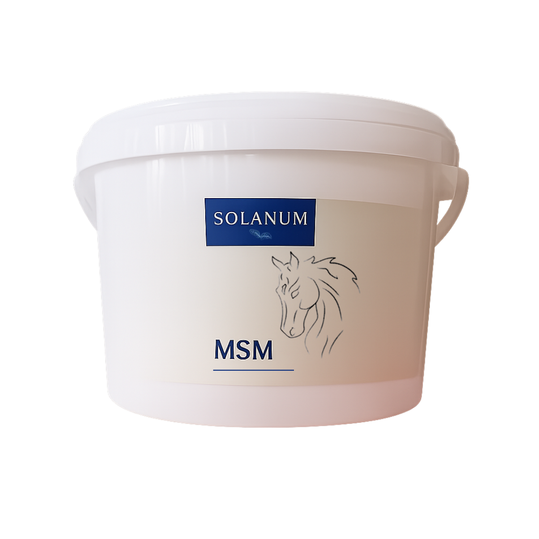 MSM (Methylsulfonylmethan) er en naturlig svovlforbindelse, der er kendt for sine mange sundhedsmæssige fordele for heste. Solanum MSM indeholder organisk svovl af høj kvalitet, som er nemt for hesten at optage. Dette supplement hjælper med at reducere irritation, støtte led- og muskelhelbred samt forbedre hudens og hovens tilstand.